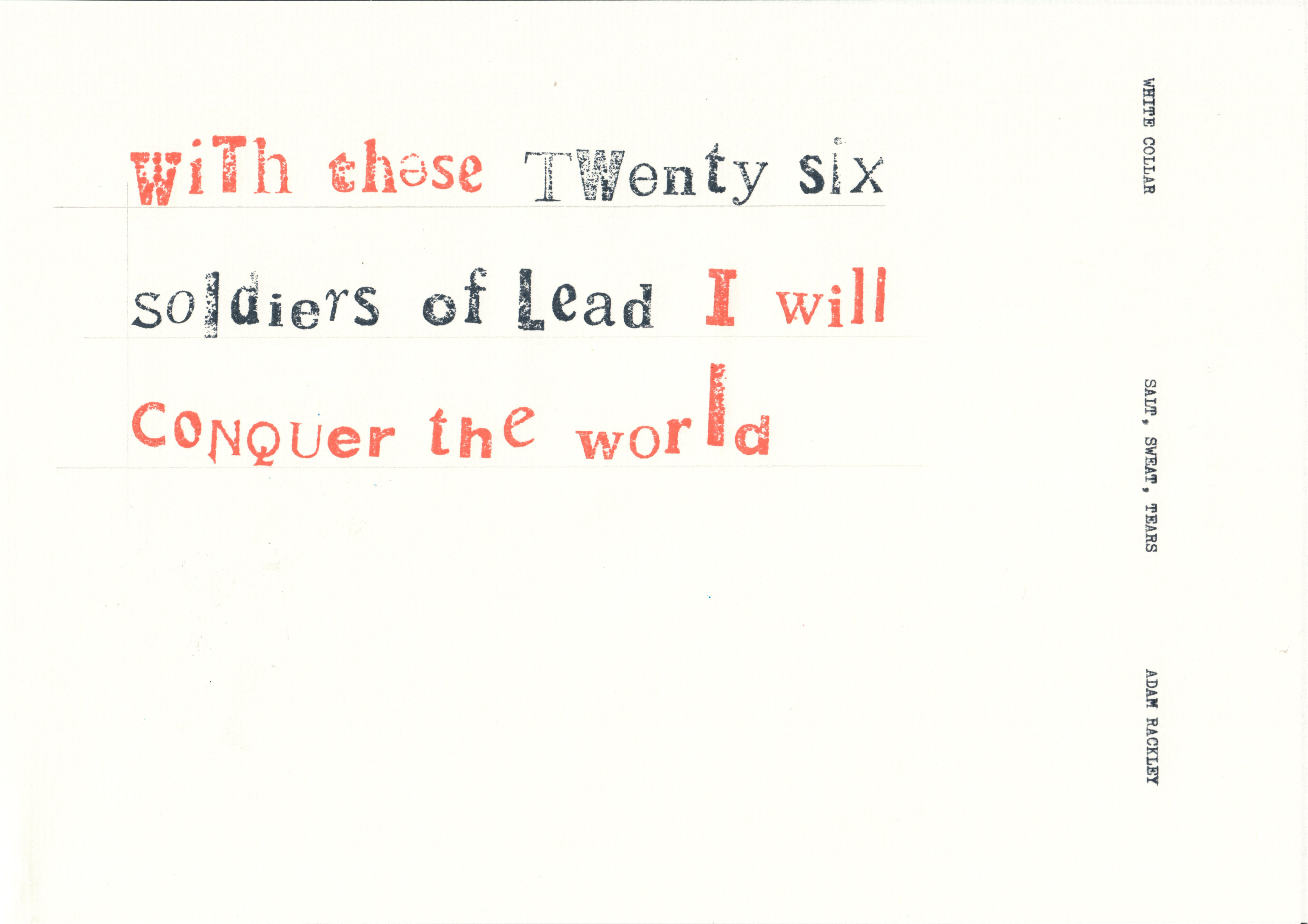 typewriter and those feelings of promise and possibility. I wrote the first draft of my novel White Collar on that Royal 203. I spent the early part of my career in Dundee, London and Mumbai, and now I live with my family in North Wales. My first book, Salt, Sweat, Tears was shortlisted for best new writer at the Cross British Sports Book Awards, 2015.